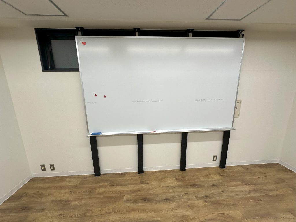 大型のホワイトボードを設置いたしました。壁への直接設置が難しいため、突っ張り棒を取り付けました。