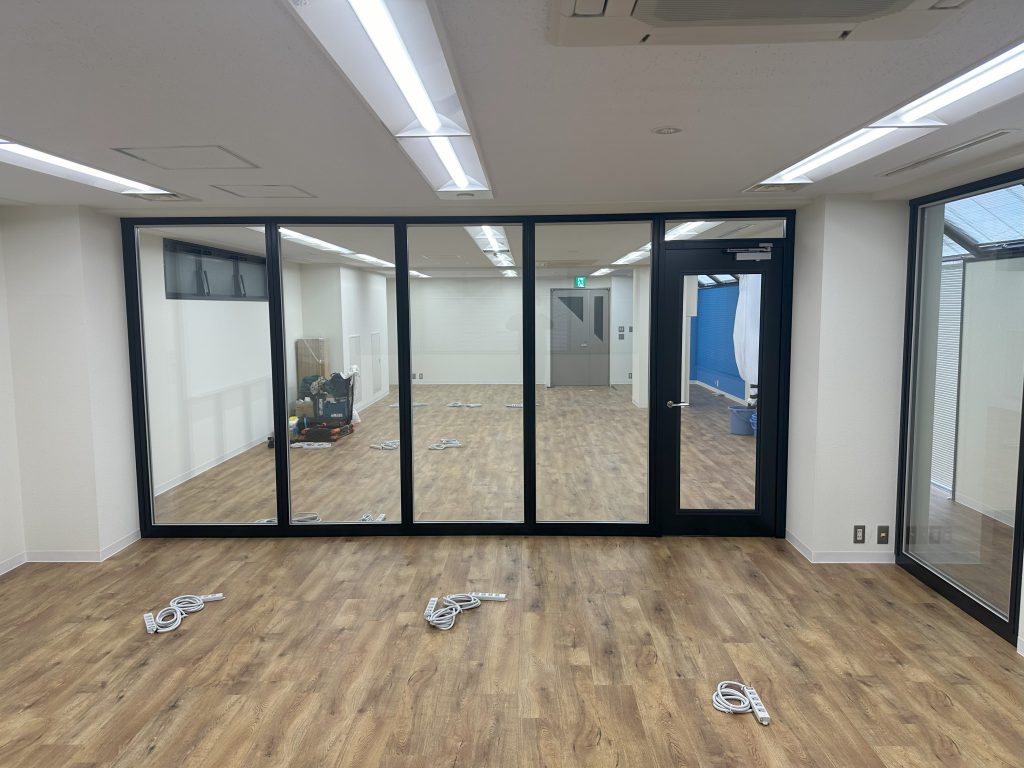 パーテーションは高級感のある黒色と、教室の様子が見えるようにガラスパーテーションを採用しています。ガラスパーテーションを用いることで空間を広く見せる工夫もしています。