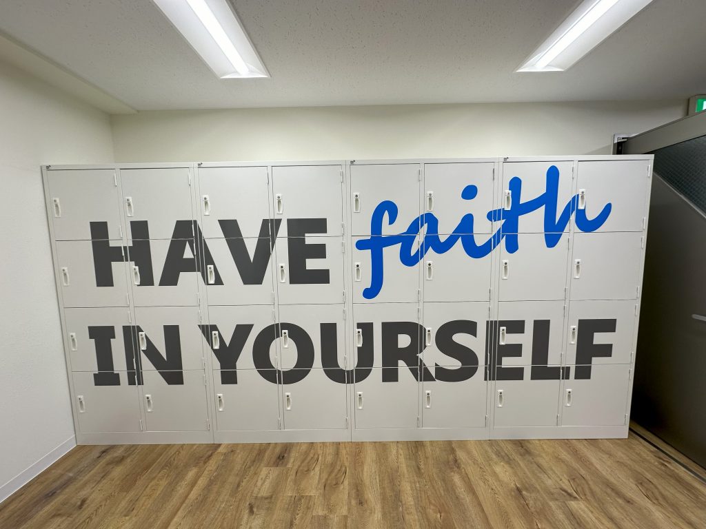 「HAVE faith IN YOURSELF」とありますが、「自分を信じろ」と生徒に向けたメッセージになります。